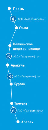 Наш путь до конечной точки пролегает через один из крупнейших городов Сибири — Тюмень. Не забудьте немного перевести дух, заправиться и зарядить телефон. Это можно сделать на АЗС Газпромнефть в районе Каскары (Тобольский тракт).